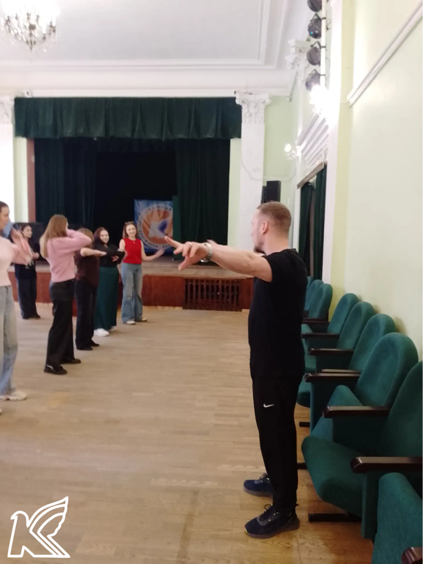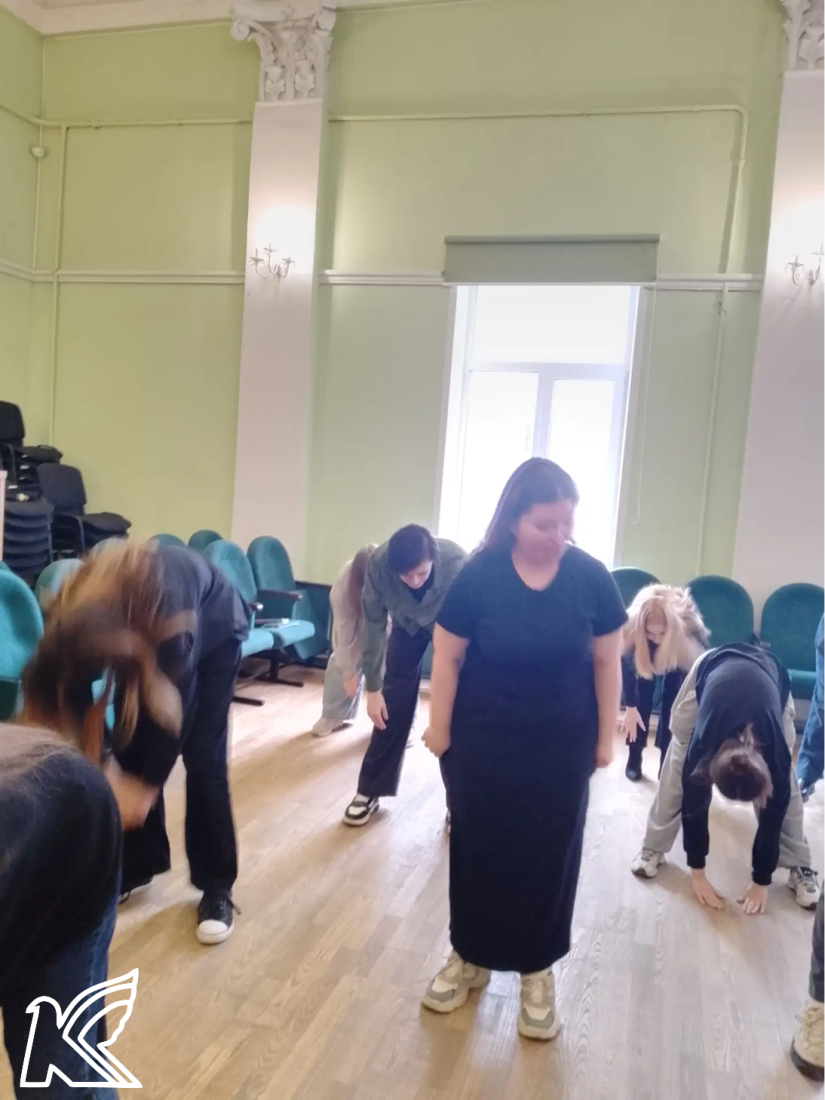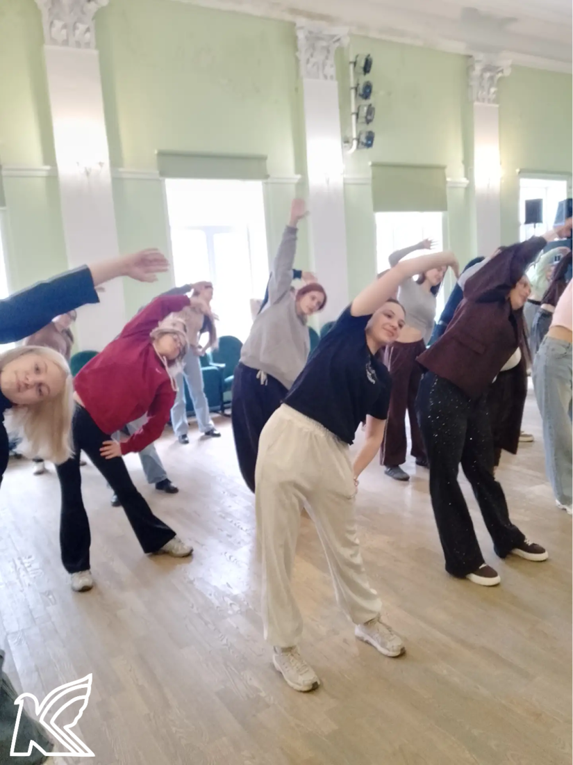 Студенты и преподаватели с удовольствием выполнили короткие, но энергичные упражнения: разминку для шеи и плеч, приседания и прыжки. Всего несколько минут активности помогли взбодриться, размяться и зарядиться позитивом на весь день!
