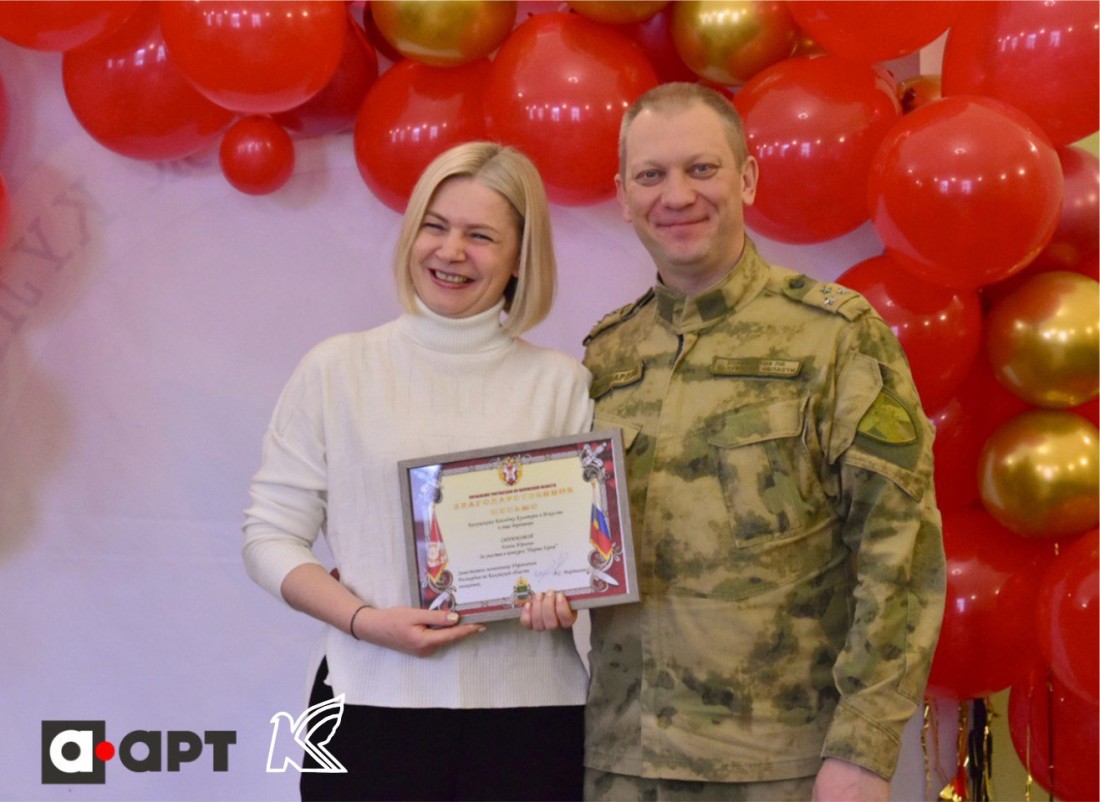 На вручении присутствовал представитель Росгвардии Мартынов Р.С., который с удовольствием вручил благодарственные письма администрации колледжа и преподавателям специальности «Дизайн» за их вклад в развитие творческих способностей студентов.