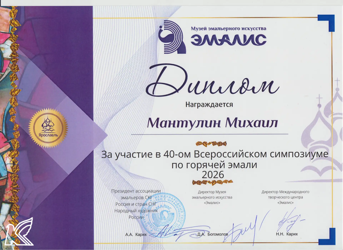 Рады сообщить, что наш преподаватель Мантулин Михаил Дмитриевич принял участие во Всероссийском симпозиуме по горячей эмали, который проходил в Ярославле с 23 марта по 6 апреля 2026 года!