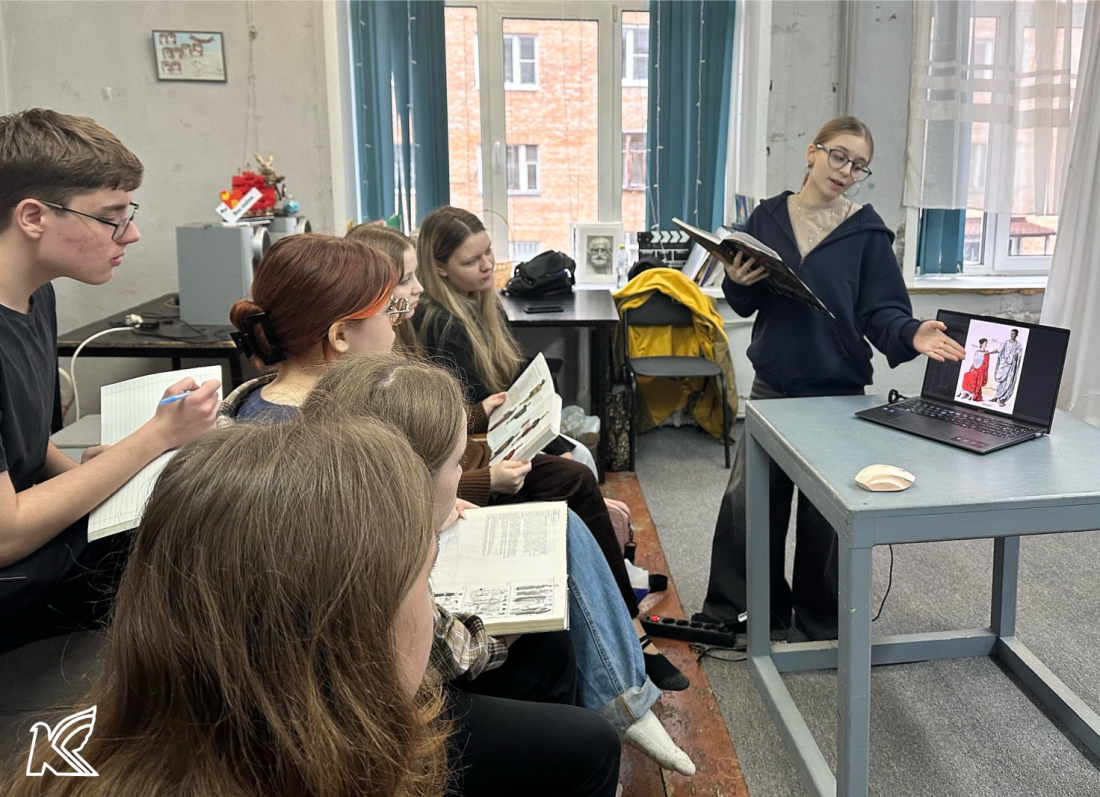 На занятии студенты подготовили презентацию на тему "Костюм Древней Греции", в которой они изучили различия между отдельными видами одежды. Они также посетили выставку работ студентов специальности "Живопись", чтобы получить вдохновение и идеи для своих реконструкций. Одной из интересных задач, стоявших перед студентами, было создание костюма из одного цельного полотна ткани. Это требовало не только духа творчества, но и понимания технологий, используемых в древности. Студенты старались следовать традициям, максимально соответствуя оригинальным методам изготовления, чтобы передать атмосферу той эпохи.