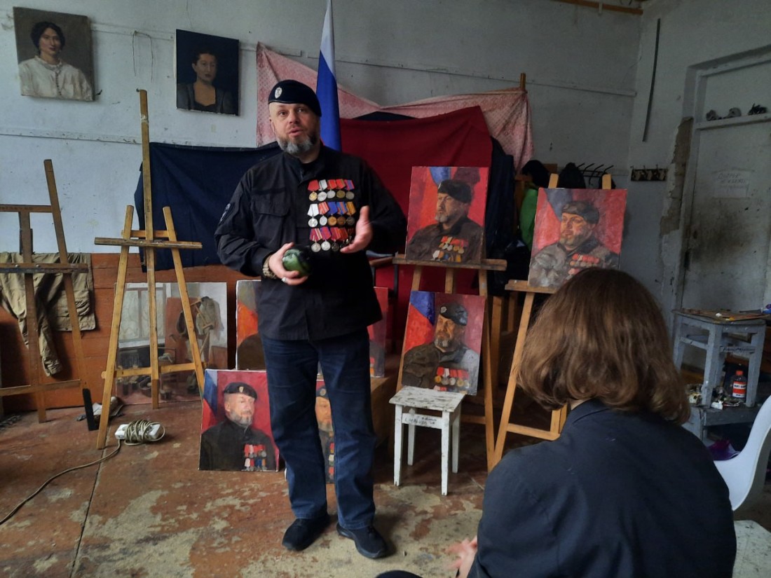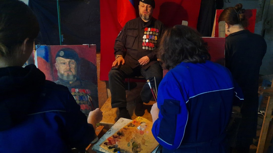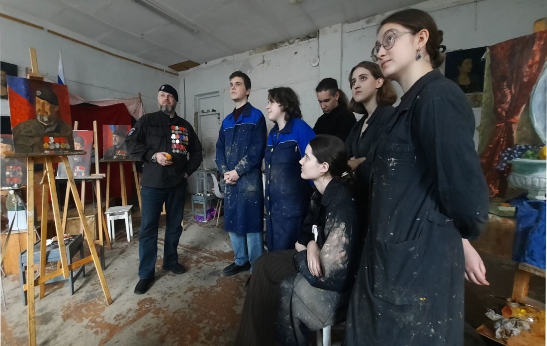 Молодых художников-живописцев вдохновлял на усердную работу и внешний мужественный вид натурщика, который напоминал русского богатыря с картин Васнецова, и его строгий военный костюм, до пояса увешанный орденами и особенно откровенные воспоминания о детстве, мечтах и текущих стремлениях. Все послужило основой для создания живых портретов Героя на учебных холстах наших молодых художников. Во время натурных сеансов боец поделился теми духовными ценностями, которые движут им в военной службе, почему он выбрал путь военного, рассказывал ребятам о боевых обязанностях, о важности дружбы м взаимопомощи, товариществе. Знакомил студентов с военным снаряжением бойца, говорил о важности оказания первой медицинской помощи на поле боя.